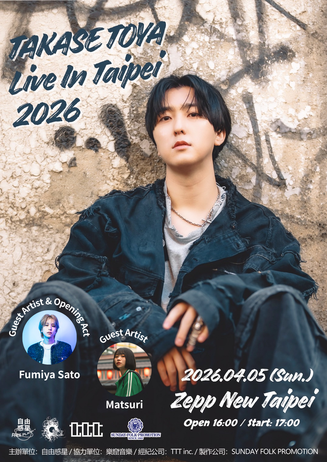 Zepp New Taipei にて開催する「TAKASE TOYA LIVE IN TAIPEI 2026」に「Fumiya Sato」と「まつり」の出演が決定!